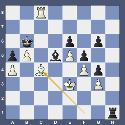 In this position, instead of playing 38. Bxb7 (equal according to Stockfish), von Scheve tried Rxb7?, presumably thinking he was either promoting or mating, but he must have missed something. Undaunted, he played on a piece down in the ending, eventually reaching this position, with Lee to play.