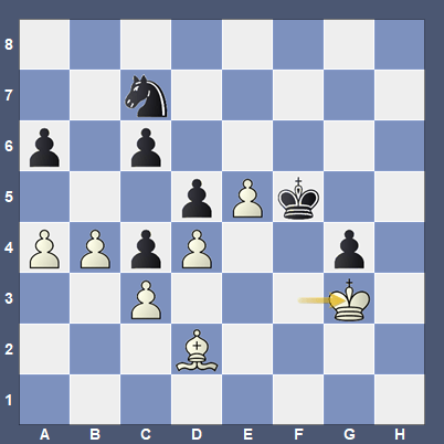 You can judge for yourself: here’s the critical position after a lot of rather tedious manoeuvring, with Lee (Black) to play his 71st move.