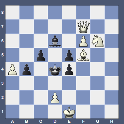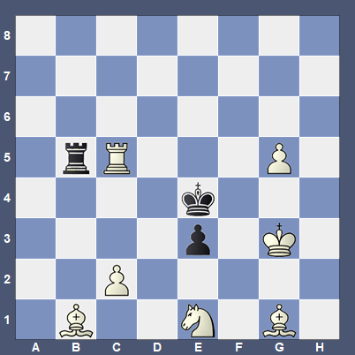 [FEN “r1k5/8/2N4p/P5p1/8/4b3/3pB3/3K1R2 w – – 0 1”]