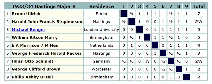 Brown missed Hastings in 1932-33, but was again in the Major B section in 1933-34, where he shared last place.