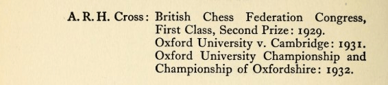 Tylor was a player of genuine master standard, competing with distinction against the best in the world, while Cross was a very strong county standard player. In addition, another blind player, Reginald Bonham, halfway between Tylor and Cross in age, was of similar strength to the latter, although he played most of his chess after the war. Tylor and Bonham were also formidable correspondence players, both winning the British Correspondence Championship on three occasions.
