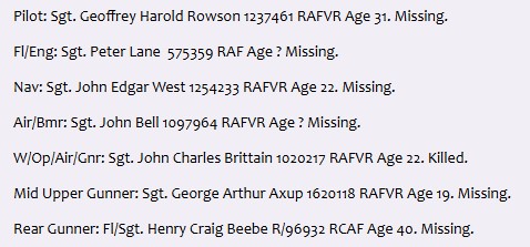 Here are the names of Geoffrey’s crew. We should never forget the brave young men who paid the ultimate penalty in our fight against Fascism.
