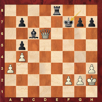 Here’s the final position, with Gifford (White) to play. Stockfish suggests 39. a4 and if 39… bxa4 then 40. b5 Bxb5 41. Qd5+.