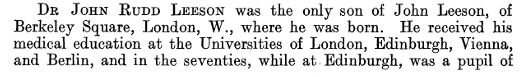 He was born in 1854 in London, the son of a doctor, receiving his medical education in London, Edinburgh, Vienna and Berlin. While in Edinburgh he was privileged to work under Joseph Lister, becoming his house surgeon. Many years later he wrote a book about his mentor: modern reprints are readily available, for example here.