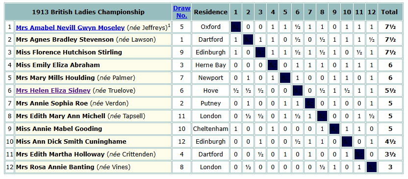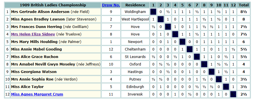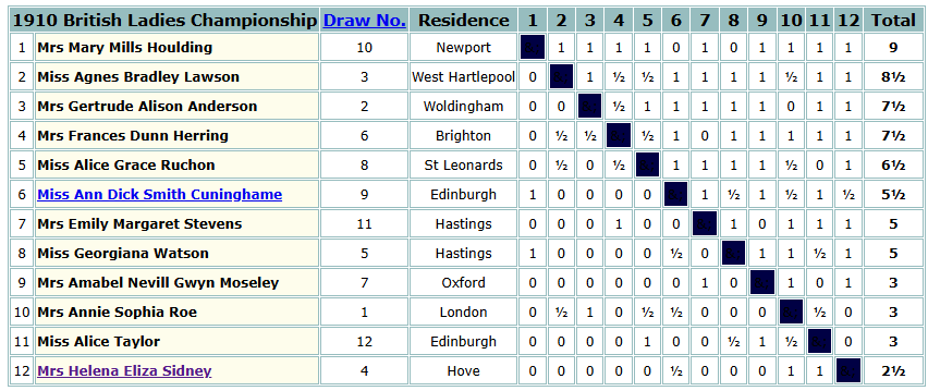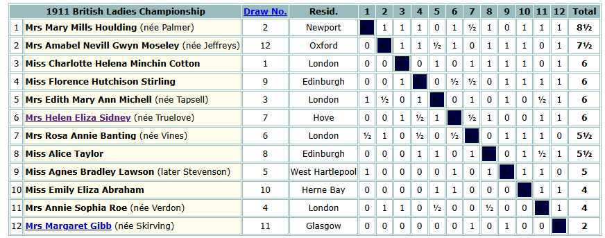 But she was back again in London in 1907, scoring 7/11 to finish in fourth place, just ahead of Annie Gooding, with Alice Hooke trailing.