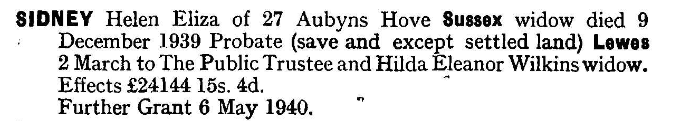 She was also continuing her late husband’s property development business: there are records in the London Gazette in 1930, 1931 and 1933 relating to the acquisition of properties in Hove.