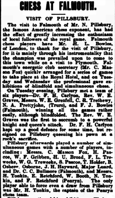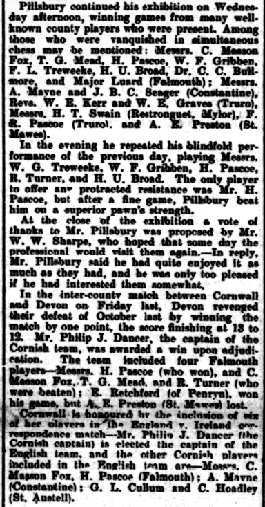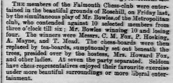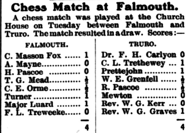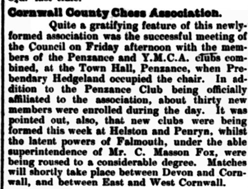 Here we have the new Cornwall County Chess Association, with Charles Masson Fox again involved.