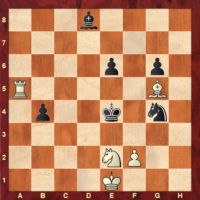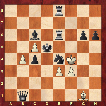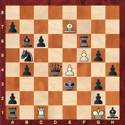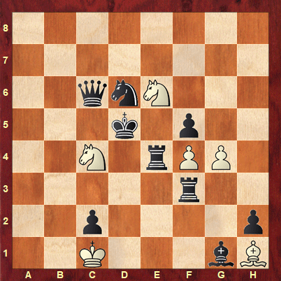 1. e4 e5 2. d4 exd4 3. Nf3 Nc6 4. Bc4 d6 5. c3 Be6 6. Bxe6 fxe6 7. cxd4 Qd7 8. d5 exd5 9. exd5 Nce7 10. Nc3 Nf6 11. Bg5 Ng6 12. Nd4 Be7 13. Ne6 Kf7 14. f4 Nxd5 15. f5 Nxc3 16. fxg6+ Ke8 17. Nxg7+ Kd8 18. Qh5 Ne4 19. Bh4 h6 20. O-O Bxh4 21. Qxh4+ Ng5 22. Rf7 Qc6 23. Ne6+ Ke8 24. Re1 Qb6+ 25. Kh1 Nxf7 26. gxf7+ Kxf7 1-0