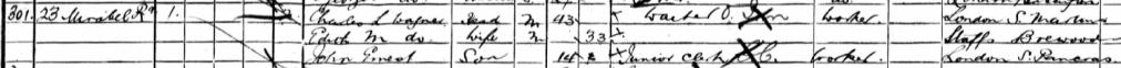 I think this was them in Fulham in the 1901 census, and his mother’s maiden name was, I believe Egan. It’s hard to find out more, or about what happened to John Ernest Wagner later in life. Edith and Ernest disappeared from history, but Charles Masson Fox certainly didn’t.
